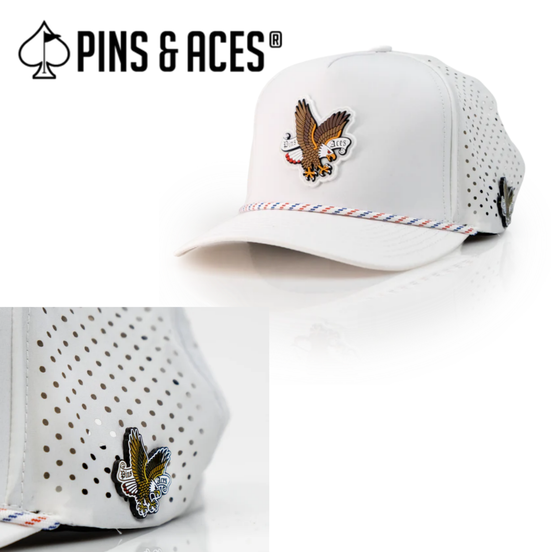 Pins & Aces: Freedom Eagle White Snapback Hat & MATCHING Ball Marker