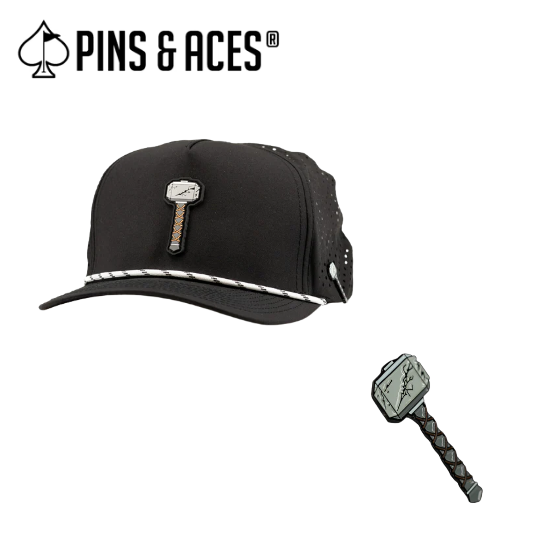 Pins & Aces: Thor's Hammer Black Snapback Hat & MATCHING Ball Marker